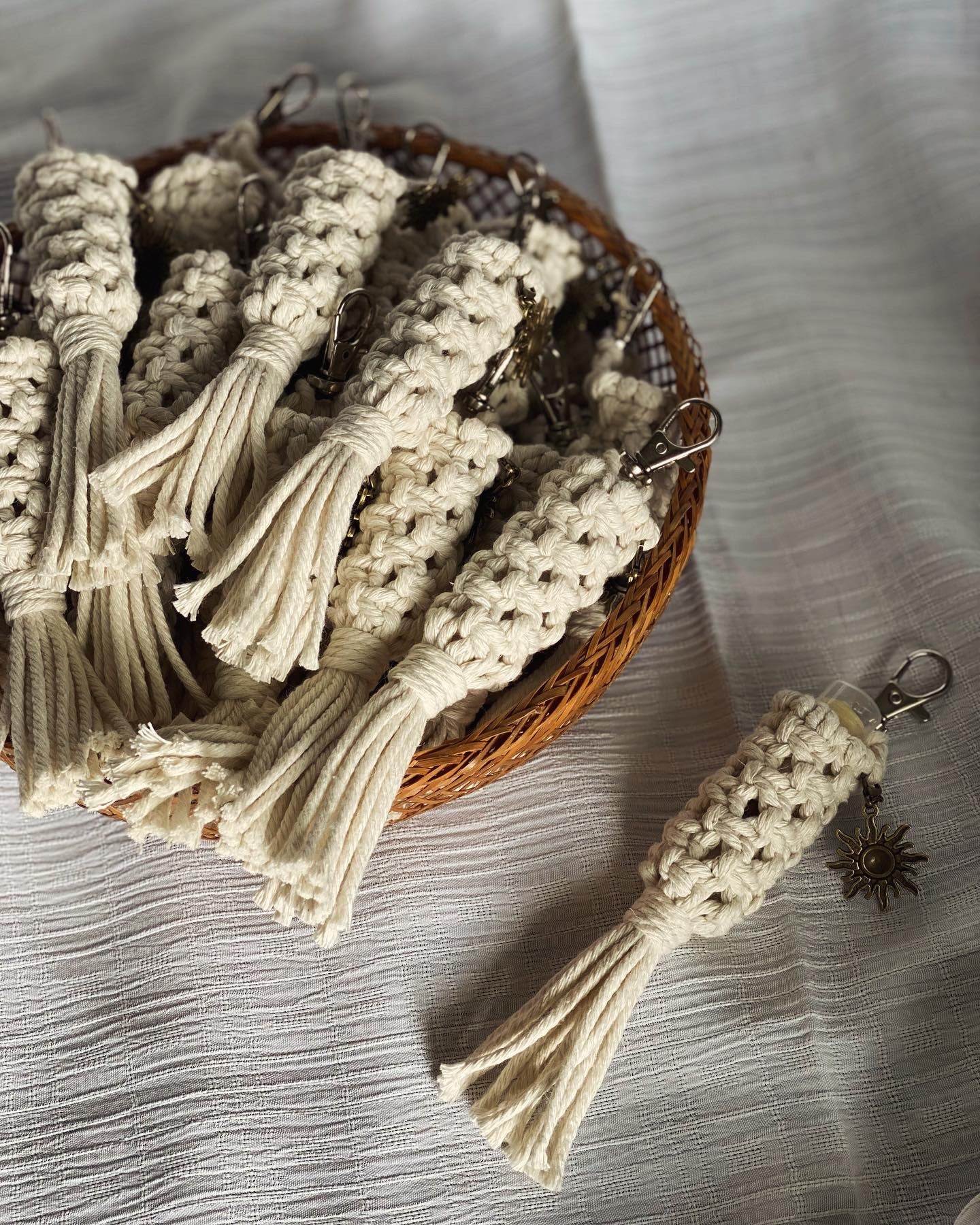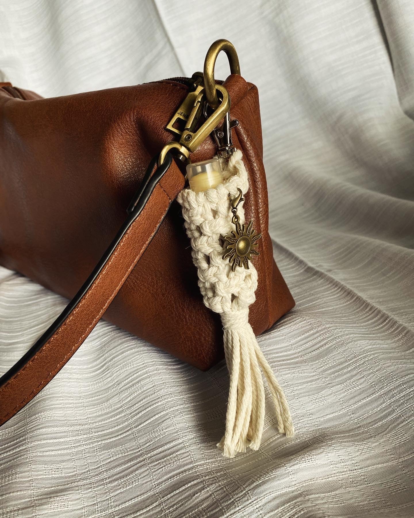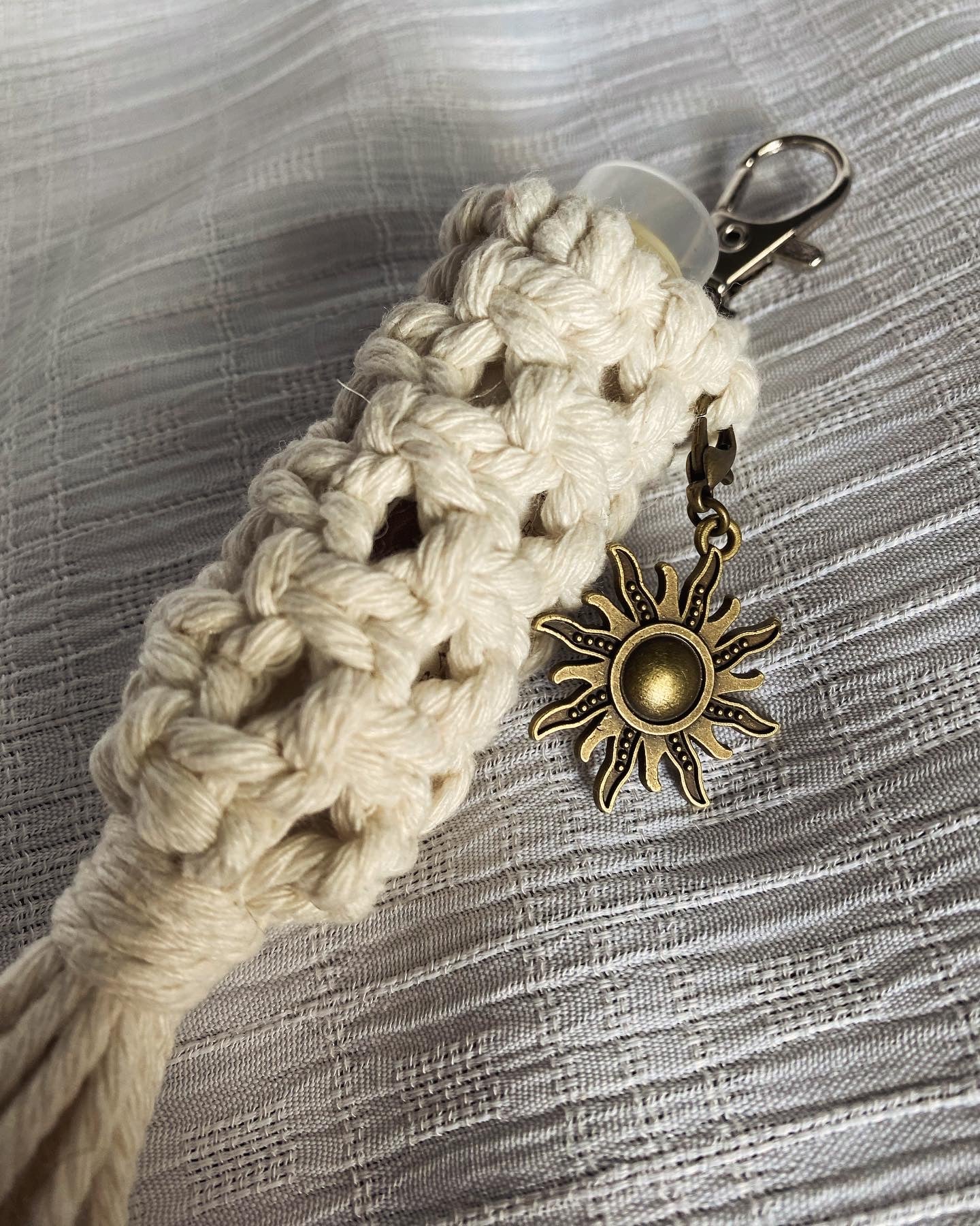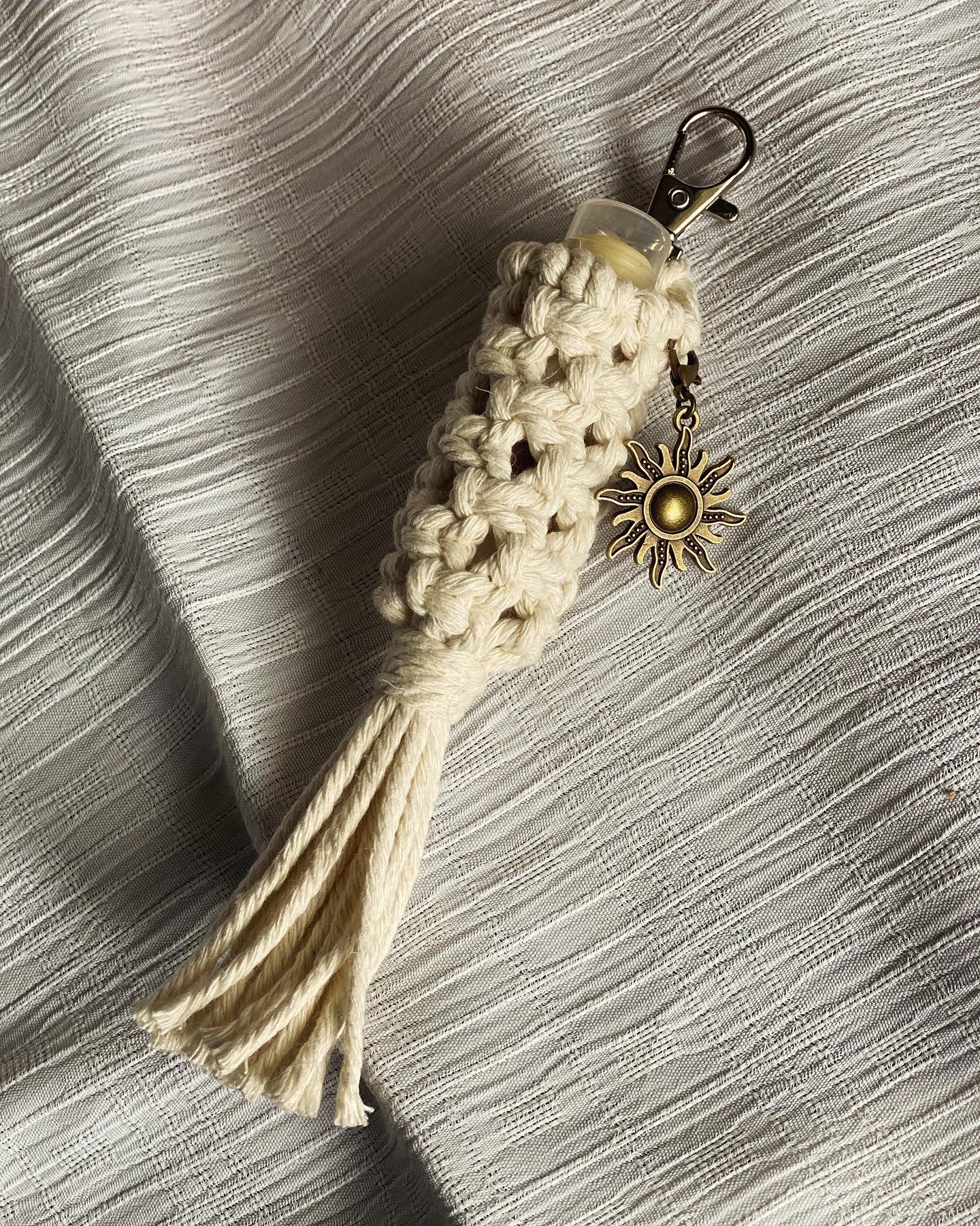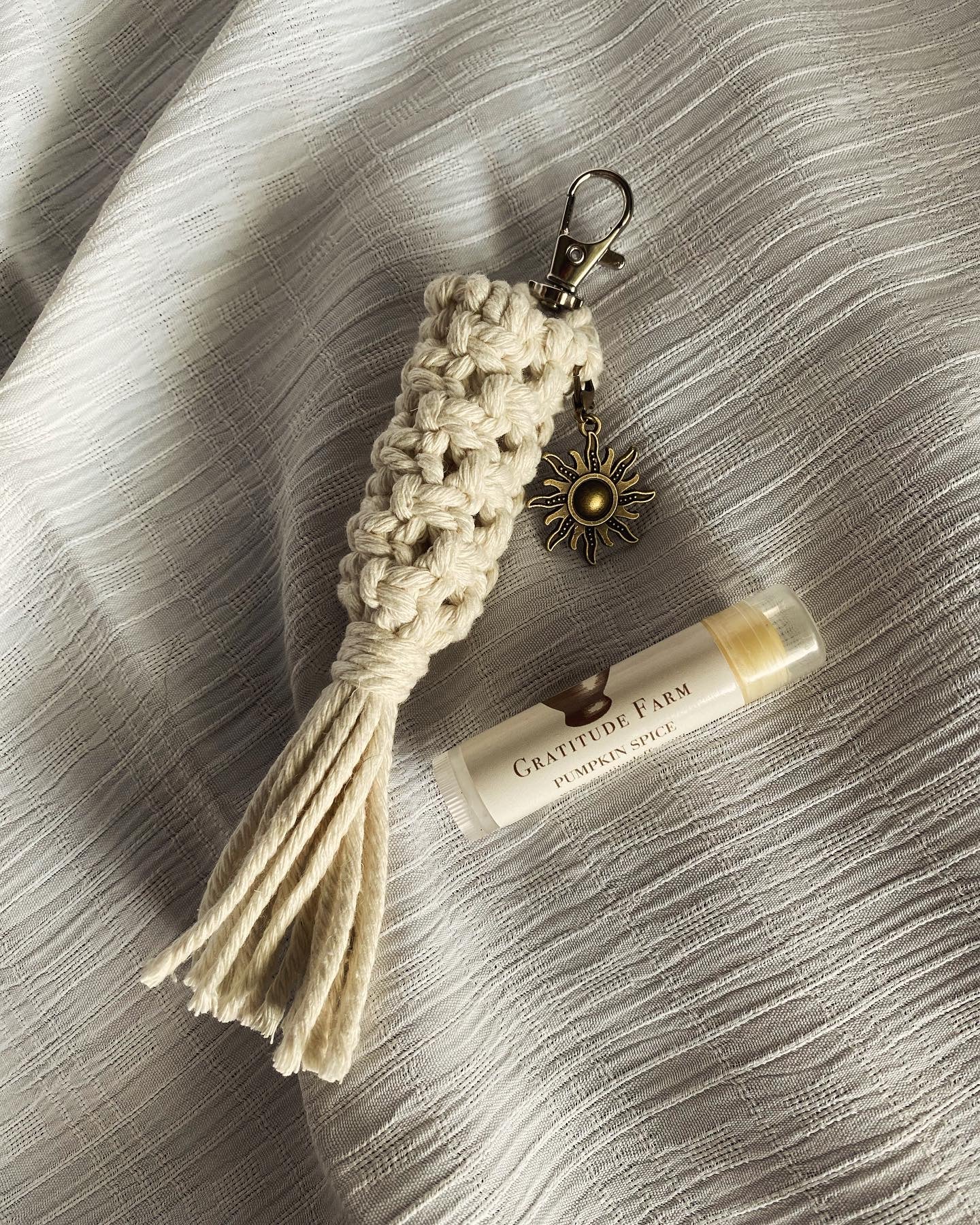 This macrame lip balm Keychain is the perfect solution to keeping track of your favorite chapstick and avoiding digging for it at the bottom of your purse! Available with or without a charm!